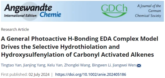 文江伟副教授团队在H-键-S-EDA光化学领域取得突破性进展,相关研究成果发表在国际顶级期刊《德国应用化学》(Angewandte Chemie International Edition)上,论文题为“A General Photoactive H-Bonding EDA Complex Model Drives the Selective Hydrothiolation and Hydroxysulfenylation of Carbonyl Activated Alkenes”,文章链接://onlinelibrary.wiley.com/doi/10.1002/anie.202405186。动漫之家