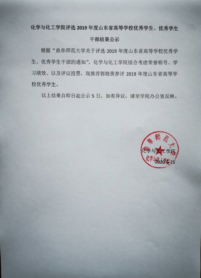 动漫之家 评选2019年度山东省高等学校优秀学生、优秀学生干部结果公示