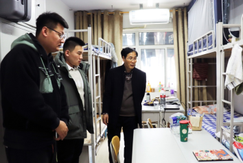 图为李平副院长与研究生会成员检查学生宿舍