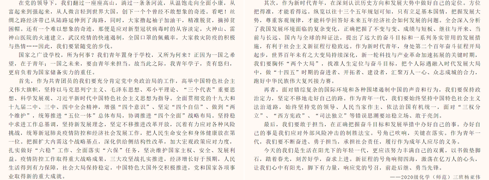 奋进新征程,青春续华章。学子们以多种形式向二十大献礼,用饱满的热情与青春干劲讴歌礼赞新征程。通过举办此次活动,全体师生将继续发扬社会主义伟大精神、坚定理想信念、担当时代使命,为实现中华民族伟大复兴的中国梦贡献青春力量,以优异的成绩礼赞新时代。