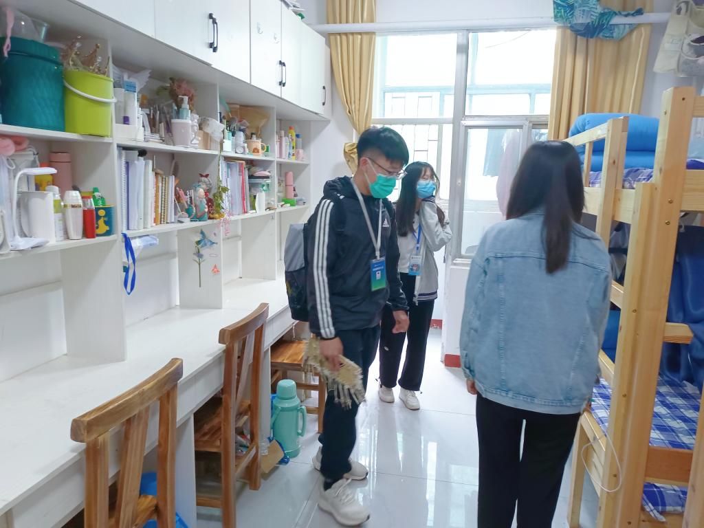 辅导员蒋君带领学生会宿舍管理部成员对学院部分宿舍展开安全卫生检查工作。