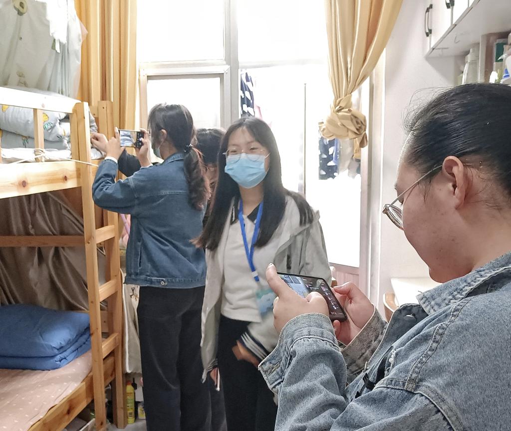图为宿舍管理部成员拍照记录