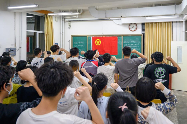 图为学院团支部成员重温入团誓词