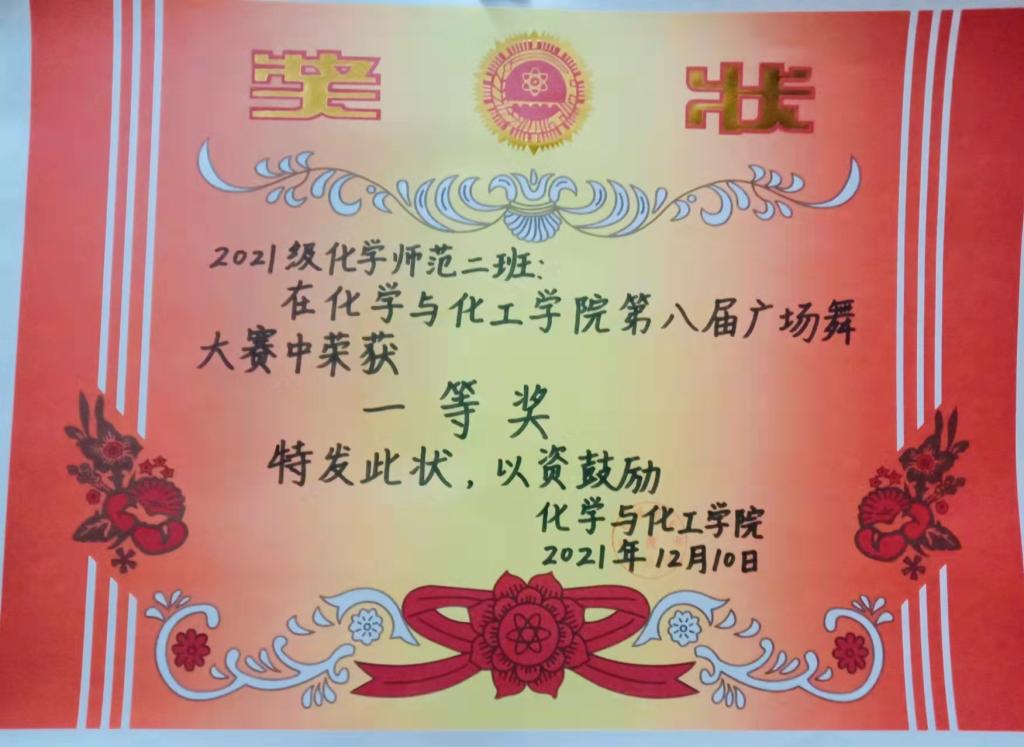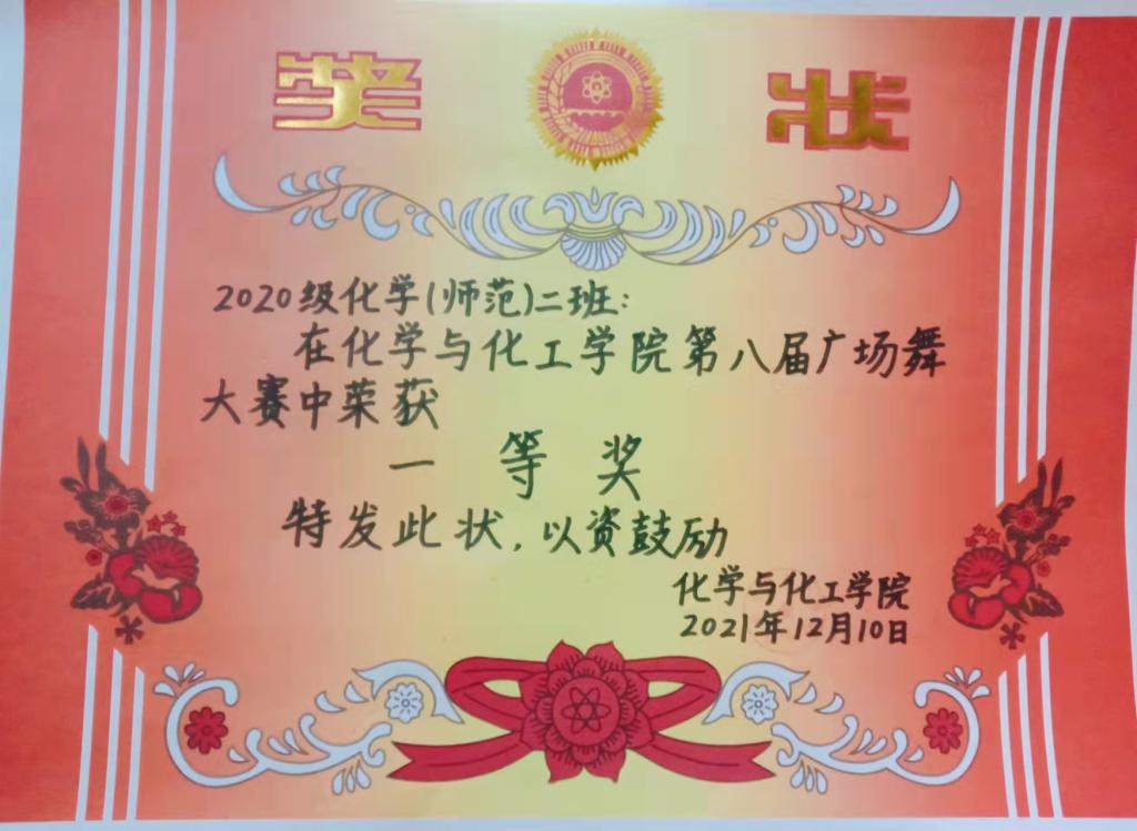 秋高气爽之时,少年挥动韵律,和风同舞。正值深秋,同学们活力四射的舞蹈不断点燃评委席的激情。线上评比中,《快乐甜岛》展现了校园生活的美好;《大中国》舞出了对祖国繁荣昌盛的祝愿;《燃脂在行动》表达了对健康生活的追求。各参赛队伍将广场舞的整体性与现代舞蹈的多变性有机结合,赢得了现场评审的一致好评。经过最终评定,2021级化学师范二班、2020级化学(师范)二班获得一等奖;2021级化学师范一班、2021级化学工程与工艺班、2020级化学(师范)三班获得二等奖;2021级制药工程班、2021级公费师范生班、2021级化学师范三班获得三等奖;2020级制药工程班、2020级应用化学班、2021级材料化学班、2020级公费师范生班、2020级化学工程与工艺班、2020级材料化学班、2020级化学(师范)一班获得优秀奖。