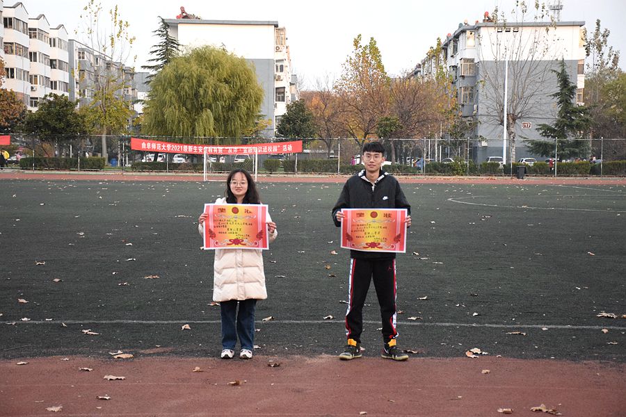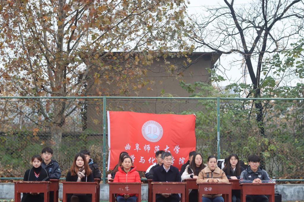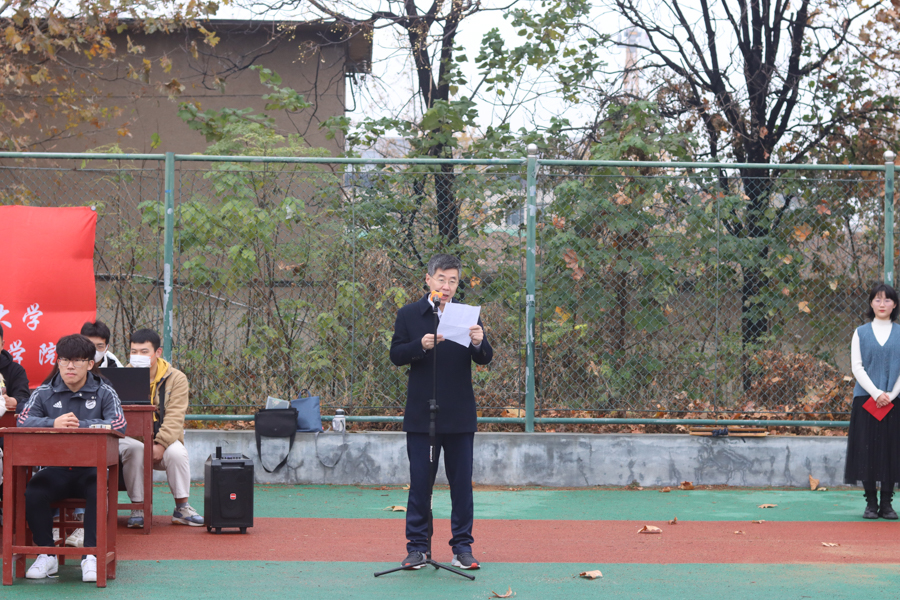 于校西田径场举办2021年冬季田径运动会。党委书记赵琪、党委副书记孙金玲、辅导员王亚平、毛艺霏、蒋君莅临现场。2020级、2021级全体同学参加本次运动会。