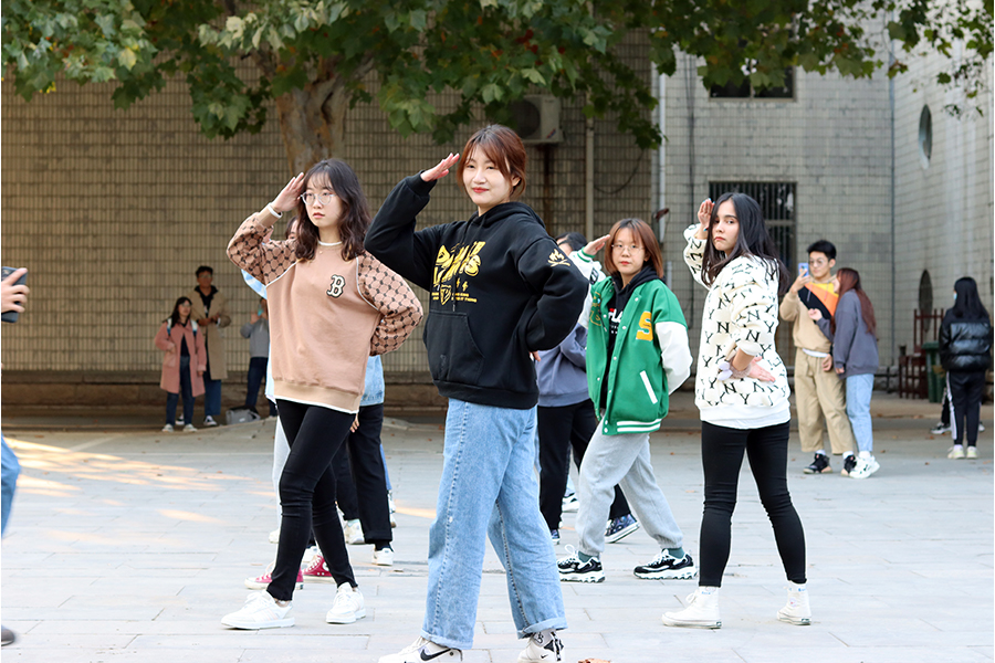第八届广场舞大赛,10月24日下午,2020级、2021级各班在校园各个角落,如火如荼地开展广场舞排练。