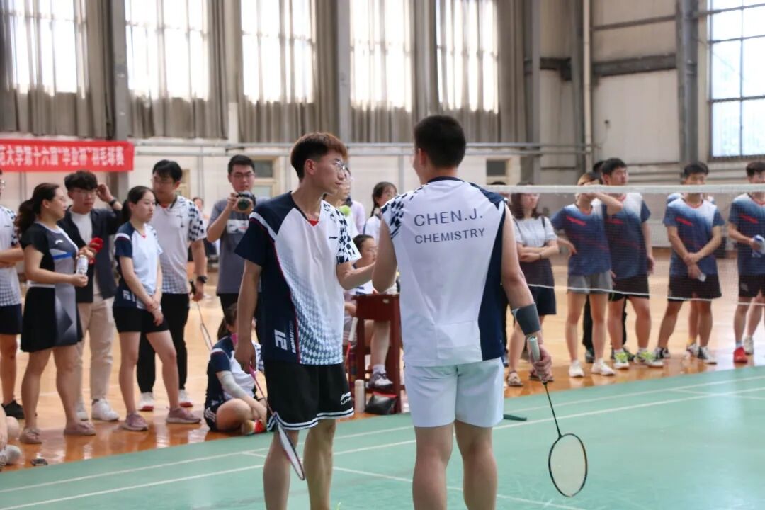 与物理工程学院进行冠亚军争夺战,面对夺冠热门,参赛球员的斗志被点燃。徐剑桥以2:0顺利拿下第一局男单比赛,赢得了开门红。随后进行的女单、女双、男双两负一胜,以2:2来到决胜局,化院与物院进行最后的较量。比赛十分焦灼,每一分都牵动着台下的心,台下的球队队员加油助威,喊出了化院的气势。但最终惜败物理工程学院,夺得了本次“毕业杯”羽毛球赛的亚军。