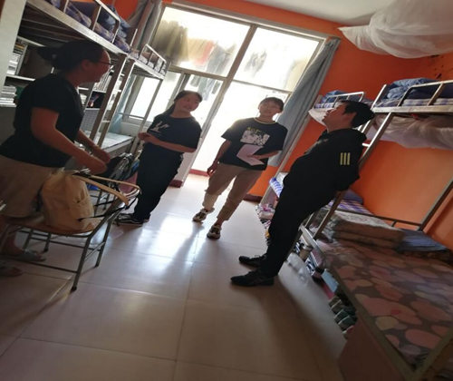 在检查过程中,冯德浩仔细查看了学生宿舍的内务整理及卫生情况,并对宿舍存在的一些安全隐患进行了逐个排查,对于部分宿舍用电不规范以及插排使用不当等问题一一指出。春夏之交是各种流行性感冒和传染病的高发季节,冯德浩建议学生们注意开窗通风,保持室内干净卫生。安全整洁的宿舍环境不仅是大学生精神风貌的体现,也是对个人身体健康的基本保障。同时也鼓励同学们在现有宿舍条件基础上,合理适当的对宿舍进行装饰,营造一个既温馨舒适又能体现大学生个性特点的宿舍环境。