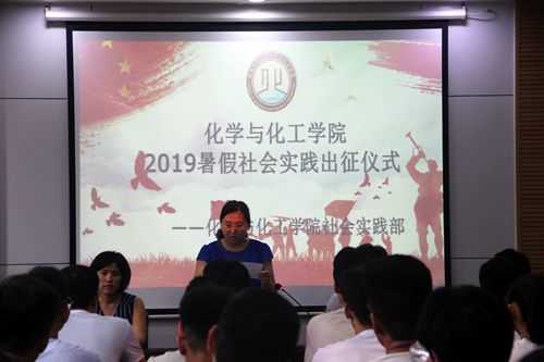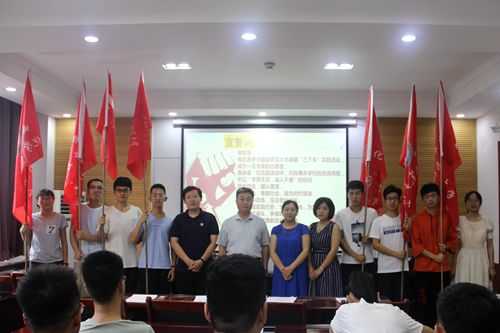 在226会议室举行2019暑假社会实践出征仪式。学院党委副书记毛永正、团委书记孙金玲,辅导员王亚平、冯德浩出席了出征仪式,2019届社会实践部全体成员,以及11支团队的青年志愿者代表参加了活动。