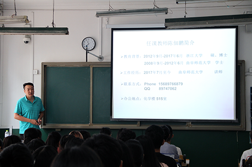教学开始,讲授有机化学的任课教师陈佃鹏首先进行自我介绍,并简要阐述有机化学的课程内容及其重要地位。紧接着他向同学们分享了学习有机化学的五个重要环节:课前预习,记听课笔记,整理、归纳总结,习题训练、讨论及答疑。之后陈老师围绕着有机化学的定义、有机化学的产生和发展、有机化学的重要性、有机化合物的结构特点等方面依次进行具体讲解。课堂最后,老师指出有机化学是一门有趣且实用的学科,希望同学们能认真学习、互相交流经验。