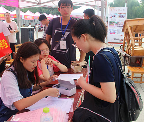 继续实行一对一接新生政策,保证迎新工作高效有序的进行。同时,在科技楼前设立了报道区、家长休息区、饮水区,方便服务新生和家长;在动漫之家