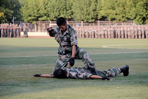 大会伊始,跑步连、擒敌拳方队、应急棍术方队等七个方队依次进行成果展示。齐步跑步连的英姿飒爽,擒敌拳、应急棍术连的干脆利落,定向越野连的健步如飞,引发了全体观众的热情。紧接着,军训教官带来的表演更是将全场气氛推向高潮,教官们飒爽的英姿、出色的表演、有力的口号不断赢得全场的掌声和欢呼声。军训期间,动漫之家