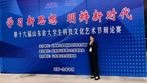 学子贺丹阳作为辩手随校辩论队代表学校参加此次比赛,队员们凭借着充分的准备与自身的实力获得了全省亚军的好成绩。