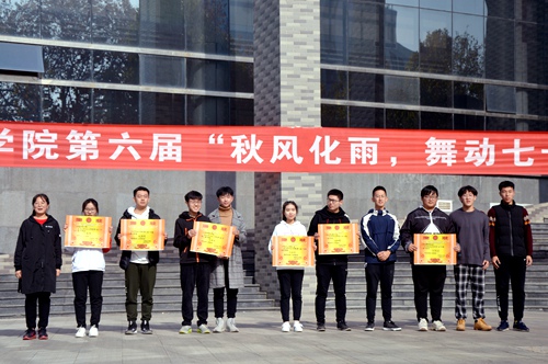 在大学生活动中心南侧隆重举办以“ 秋风化雨,舞动七十”为主题的第六届广场舞大赛。开幕式主席台就坐嘉宾有校党委常委宣传部长张隆海、校团委书记宋国栋、学生工作处副处长刘永礼、学院党委书记赵琪、学院党委副书记毛永正。舞蹈协会会长景志红、体育教学部葛瑞春、体育科学学院舞蹈教师王月敏、校啦啦队会长李玲、学院团委书记孙金玲担任评委。动漫之家