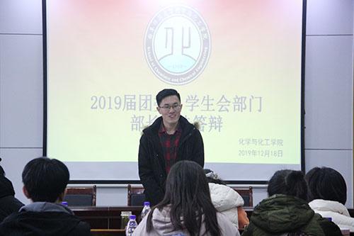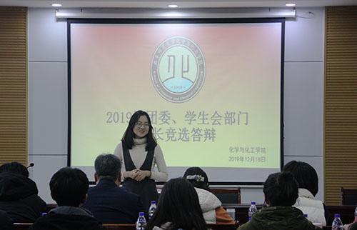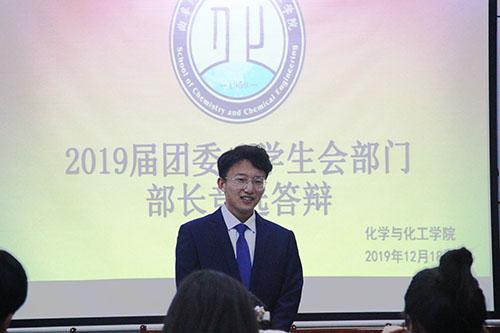 2020届团委学生会部门工作答辩于12月18日下午在院楼226会议室顺利开展。学院党委副书记毛永正,院团委书记孙金玲,辅导员王亚平、冯德浩,2019届学生会主席团出席本次竞选答辩。