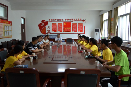 出发之前,党委副书记孙俊华对支教团的队员们提出了几点要求,并对支教活动寄予厚望。上午9:30,学院团委书记孙金玲和辅导员王亚平带领支教团一行12人,抵达邹城市田黄镇中心小学。田黄镇纪委谢鹏书记,省选大学生村官李煜,校长席见伟以及王玉强、陈鲁飞、高庆宫老师与支教团队进行对接,双方就学校的基础设施、班级管理情况、学生素质、支教活动安排等方面做了深入交流。随后,在席校长的带领下,大家一起参观了学校,并举行了授牌仪式,开启了志愿者支教活动。