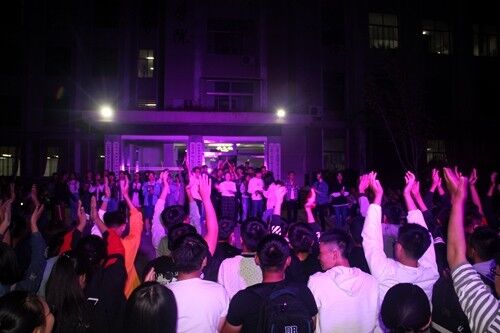 在院楼前广场举行2018年中秋联欢,团委书记孙金玲、辅导员冯德浩出席了晚会,2018级全体新生参与晚会。