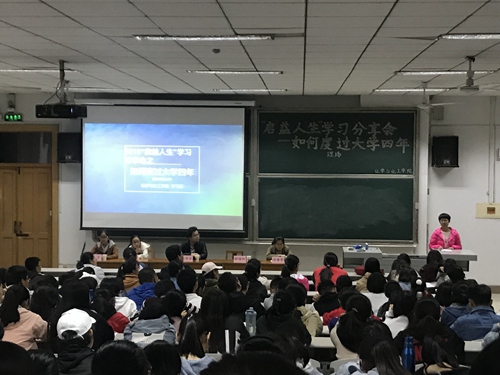 学生会学习部承办的两场“启益人生”学习分享会分别于综合楼201、301教室成功举办。本次分享会共邀请到了10位2016级和2017级的优秀学生代表,2018级全体学生参加此次学习分享会。