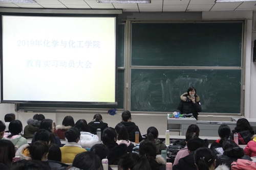 于2019年1月18日晚在综合楼406教室举行了2016级师范生教育实习动员大会,教学副院长、院团委书记、指导老师和2016级化学专业全体师范生参加了会议。会议由胡蕾老师主持。