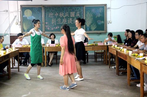 和近年来学院取得的成绩,并给大家送去了节日的祝福。师生围坐在一起聊天,冯媛媛老师指出大学要以学业为重,要求同学们无论做什么事都要把学习放在第一位;岳明波老师建议同学们劳逸结合,多参加体育运动,强身健体;陈光老师建议同学们要树立远大的目标,并为之努力奋斗。三位老师都谈到了自己的大学生活,希望同学们能从中吸取经验,以较好的状态投入到大学生活中。领导老师们与新生的谈话将座谈会的气氛推向最高潮。随后新生进行自我介绍,大家相互了解,师生有说有笑其乐融融。最后,文艺部为大家带来精彩的表演节目,来自新疆的三位新生为大家带来的新疆舞蹈得到大家的一致称赞……欢声笑语中,2015级“迎中秋,庆国庆”新生座谈会落下帷幕。