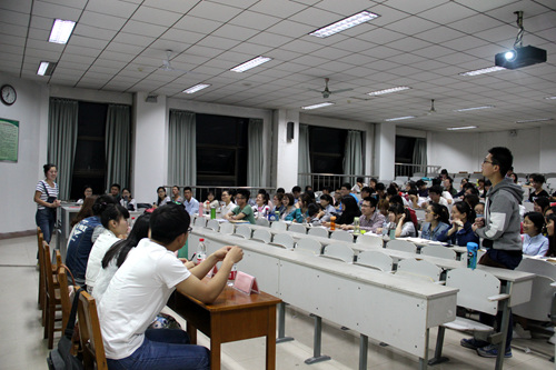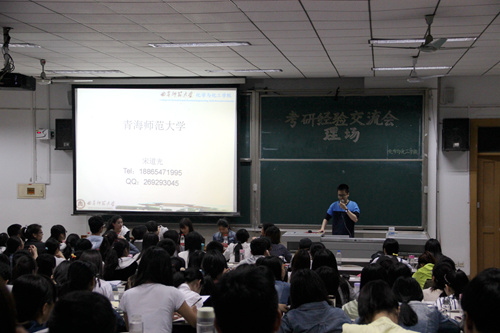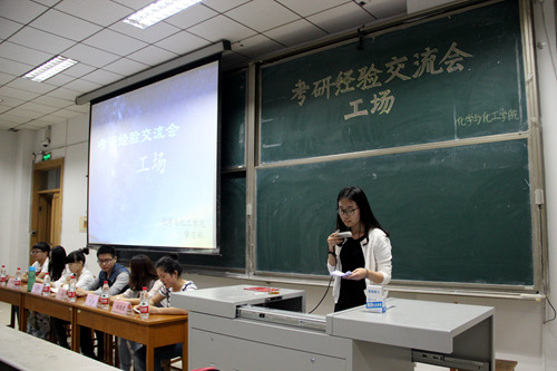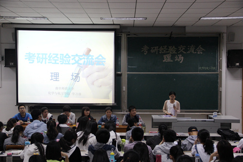 首先主持人作简单开场语,宣布本次交流会正式开始。接着,毕业生通过现场讲解、PPT展示等形式为大家讲述自己的考研经历并讲解有关考研书目、时间安排、院校选择等备受同学们关注的问题。经保研进入中国科学院过程工程研究所的刘晓霞为同学们讲述了自己的保研经历,并给同学们提出许多切实可行的学习指导意见;考取大连理工大学的袁菲强调了效率、心态的重要性,考研如同一场马拉松,决心、勇气、毅力必不可少;考取青海师范大学的宋道光建议大家重视真题,同时也指出考研复试阶段需要提前准备及注意的方面。分享结束后,进入现场提问环节,在场的同学们踊跃提出自己的疑问,学生代表们一一解答,并提出自己的意见和建议。