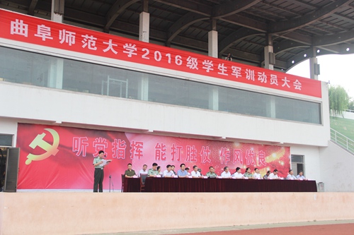 2016级学生军训动员大会在南操场隆重举行。出席曲阜校区军训动员大会的领导有:山东军区陆军预备役师参谋长翟英峰、侦察科科长杨云国;动漫之家