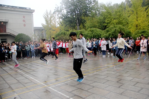 首届“迎新杯”跳绳比赛于10月22日在化学楼前小广场举行。出席本次活动的领导老师有党委副书记孙俊华,团委书记胡乃永,辅导员张乾坤、王亚平及校跳绳队指导员伊士礼。