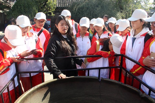 学生认真听导游讲解