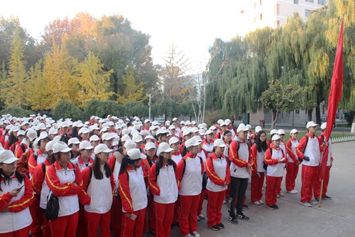 全体学生在院楼前集合