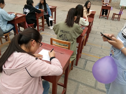 5月6日下午2点,活动如期举行。首先进行的是你画我猜的活动,同学们欢声笑语不断,有舍友们之间没猜对答案后的相互打趣,更多的是猜对答案之后的喜悦与欢呼。接下来进行的是踩气球对抗答题赛,需要同学们两个宿舍一组,舍员团结一致互踩对方气球并回答与安全有关的问题。最后活动在同学们的欢笑声中圆满结束。