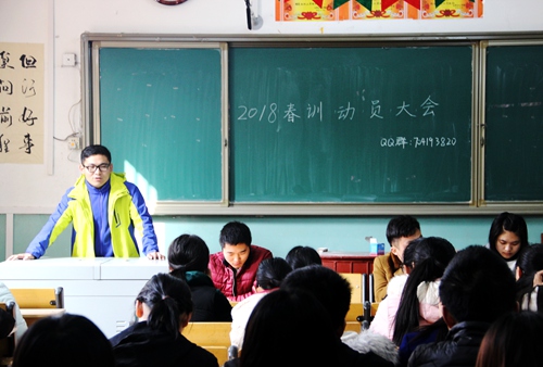于系楼105教室召开春训动员大会,学生会主席宋桂林,副主席陆长通,体育部部长王凯,卢丰丽出席本次会议。会议由王凯主持,2016级和2017级的春训运动员参加。