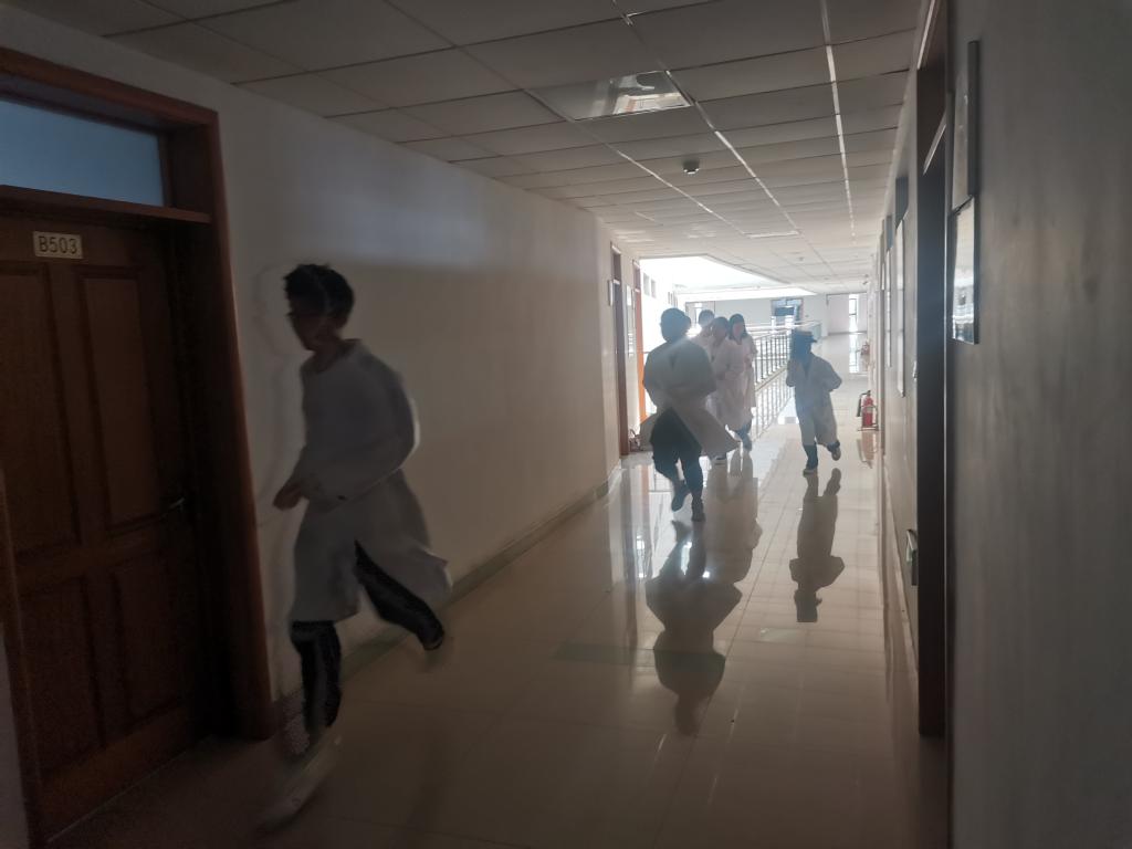 讲座结束后,实验中心办公室主任李言信老师组织学生进行了模拟火灾安全逃生培训,并在逃生演习结束后对学生逃生过程中的问题及不当操作进行纠正和总结,重点培训了学生面对灾情,必须以人为本,珍爱生命。