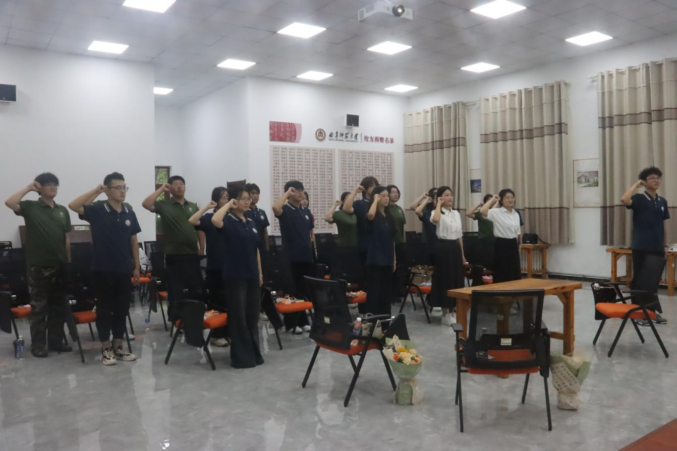 活动最后,在师范生代表王桦谦同学的带领下,全体师范生庄严宣誓:“我志愿成为一名人民教师,忠诚党的教育事业,遵守教育法律法规,履行教书育人职责,引领学生健康成长,做到有理想信念、有道德情操、有扎实学识、有仁爱之心,为教育发展、国家繁荣和民族振兴努力奋斗!”铮铮誓言,铿锵有力,表达了同学们对教育事业的无限热爱和为实现中华民族伟大复兴的中国梦贡献力量的坚定决心。