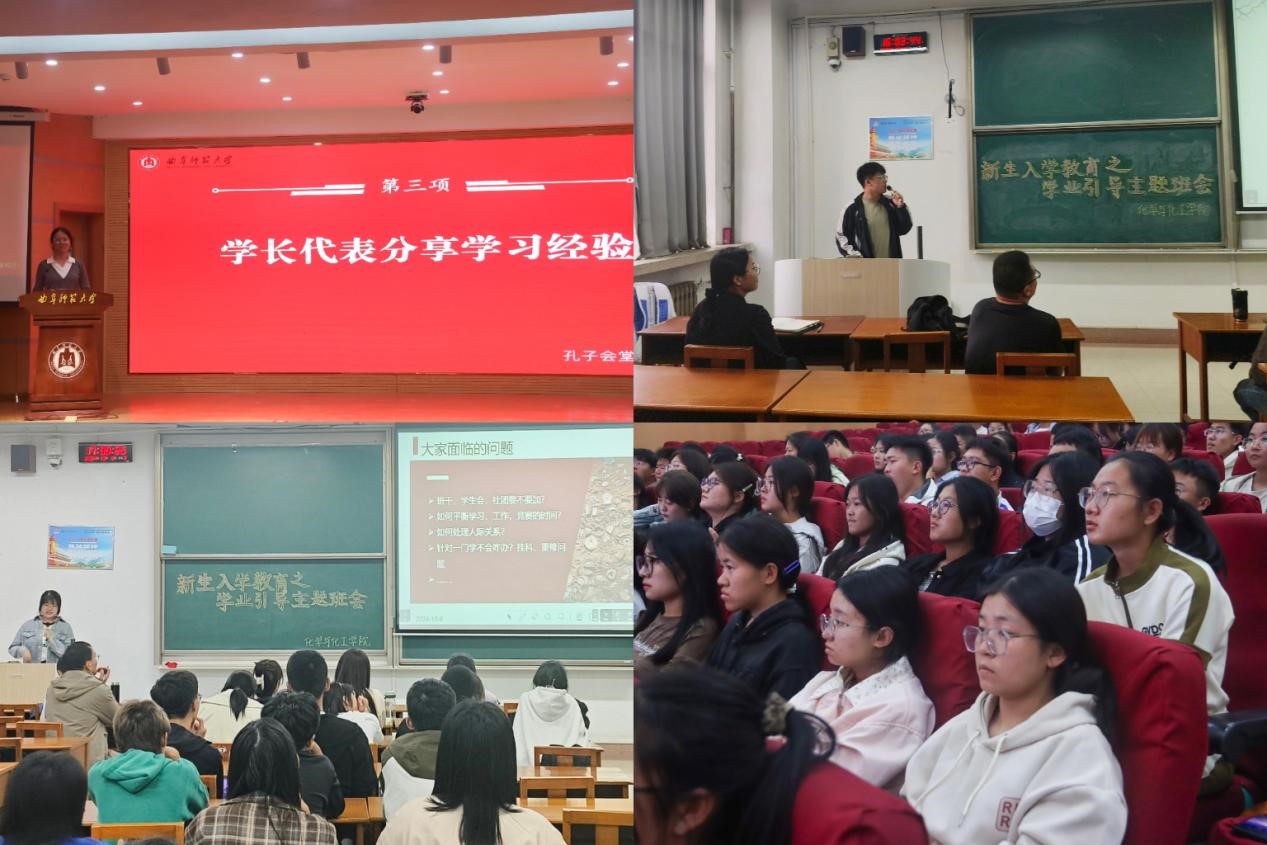 活动伊始,院长冯媛媛在树立理想信念、锤炼学习能力、坚定勇毅前行三个方面为新生讲述了大学生活的重要性,帮助新生打下良好思想基础。随后,副院长刘鹏为大家讲解了化学(师范)专业的培养方案,帮助新生明晰大学四年的学业规划。各教研室主任也分别给同学们解读了材料化学专业和化学工程与工艺专业的培养方案。最后,2023级优秀学生代表张安悦、曹一凡和王锡琳围绕学习生活、课外组织等方面为2024级新生进行了详细的介绍。新生们聆听了师哥师姐分享的经验并积极互动,现场气氛融洽。