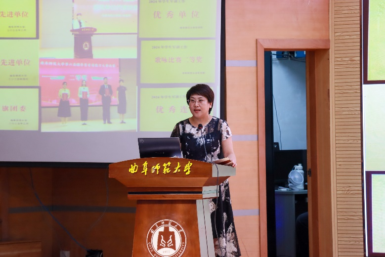 图为党委副书记孙金玲介绍学院学团工作情况