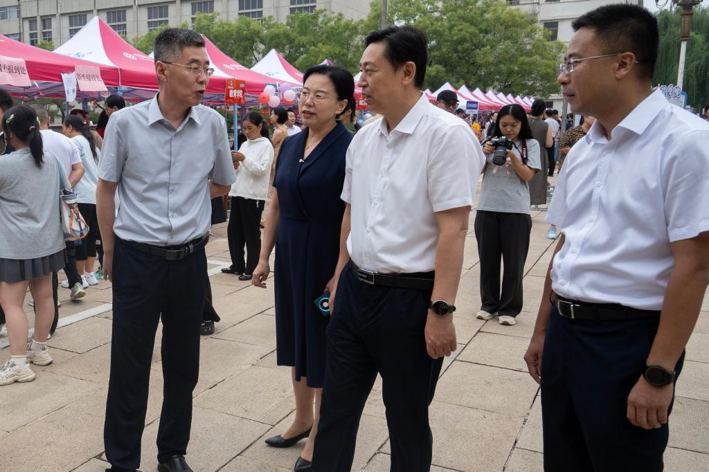 党委书记赵琪、院长冯媛媛、党委副书记孙金玲、副院长李平、副院长刘鹏、团委书记王亚平以及辅导员曾川、夏玉鑫一同深入迎新一线,主动问候新生与家长。
