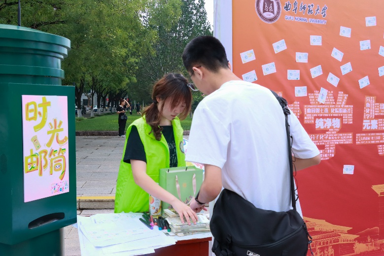 图为新生参与“时光邮筒”迎新活动