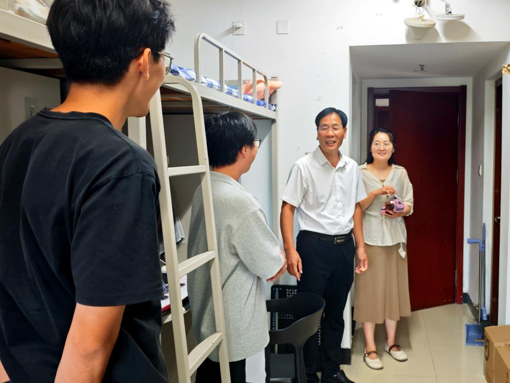 2025级新生入学后的适应情况,帮助新生更好更快地融入新集体、新环境、新生活,学院党委书记赵琪,院长冯媛媛,党委副书记孙金玲,副院长李平、刘鹏,团委书记王亚平以及新生辅导员带领学院主席团成员于9月6日下午深入多个公寓园区,开展新生宿舍公寓走访活动。