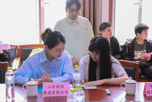 图为山东恒信集团有限公司张经理为学生解答