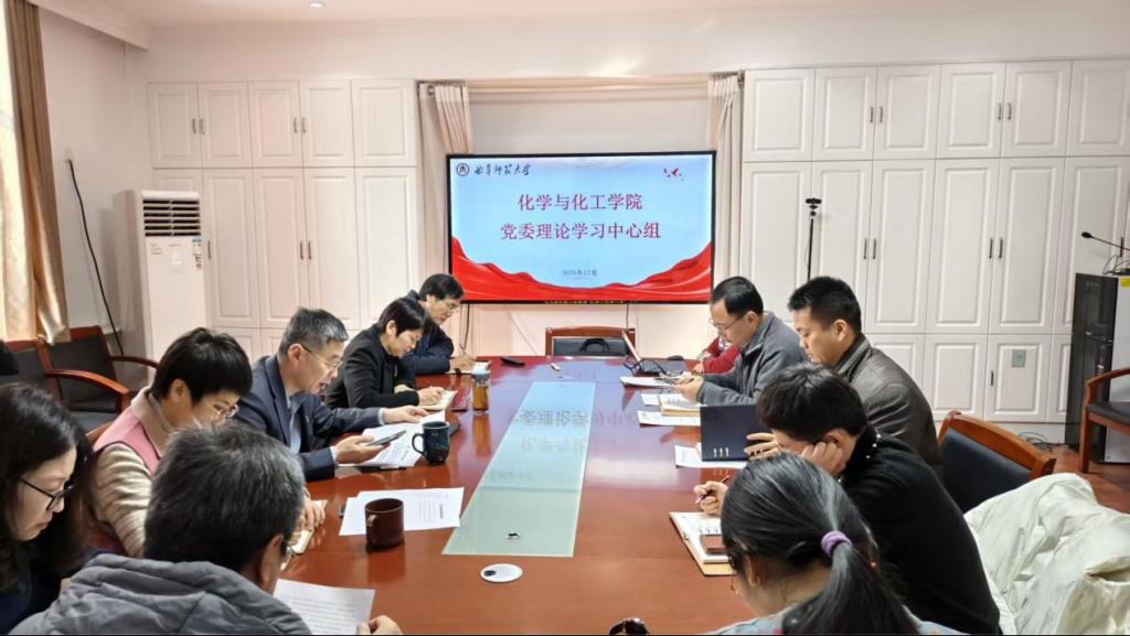 党委理论学习中心组在化学院209会议室举行了党委理论学习中心组2025年度第十三次集中学习研讨。本次学习的主要内容是:《深入学习贯彻党的二十届四中全会精神》。会议由学院党委书记赵琪主持,党委理论学习中心组成员参加。