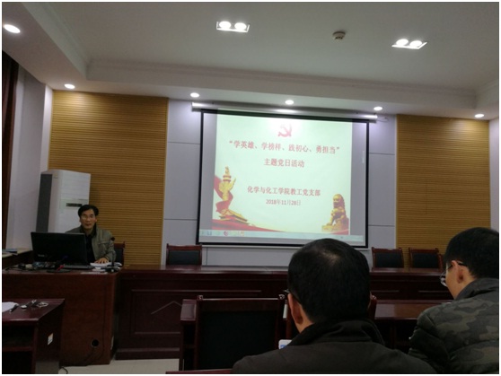 教工党支部通过观看视频、座谈交流、重温入党誓词等形式开展了“学英雄、学榜样、践初心、勇担当”主题党日活动。院党委书记赵琪同志以普通党员身份参加了支部活动。