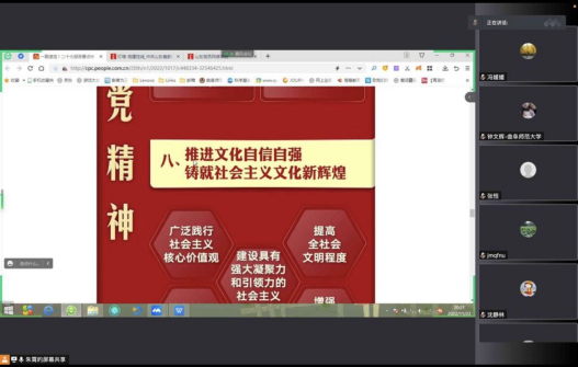 教工党支部通过腾讯会议召开党员大会,党支部书记朱霄以《学习宣传贯彻党的二十大精神》为题,向全体教工党员宣讲党的二十大精神。