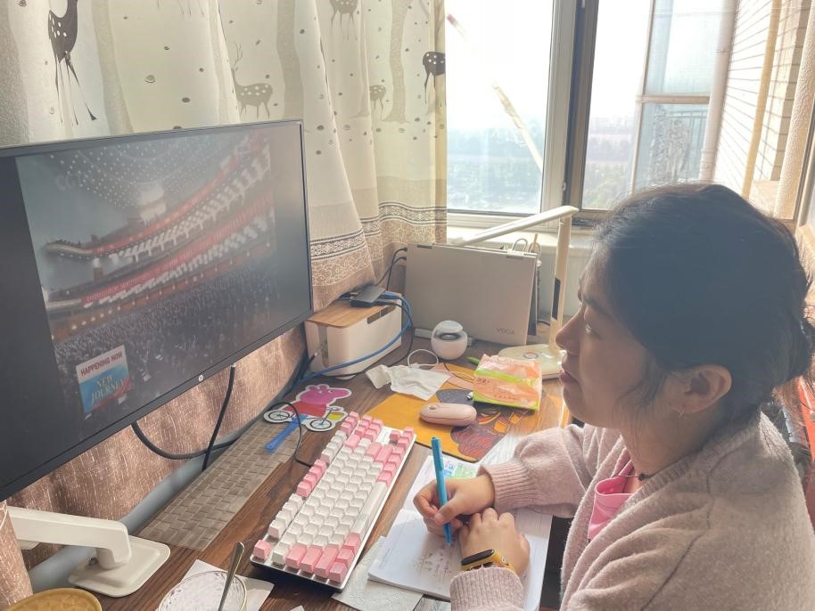 图为老师在线收听收看党的二十大开幕会