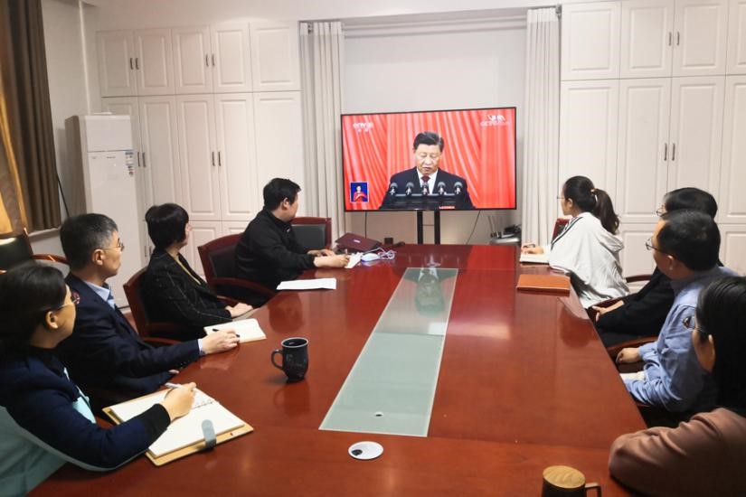 广大师生热切关注,学院党委理论学习中心组成员和部分学生党员在学院209会议室和226会议室集中收听收看开幕会,其他师生以不同形式收听收看开幕会,认真聆听习近平总书记的报告,现场气氛热烈。