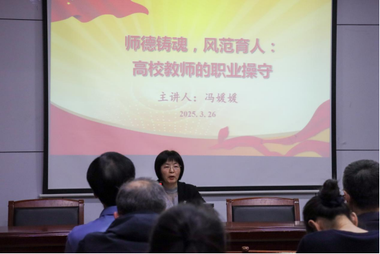 精心组织了一场主题为“师德铸魂,风范育人——高校教师的职业操守”的专题党课学习活动。此次活动由学院院长冯媛媛主讲,全体教工党员参加。