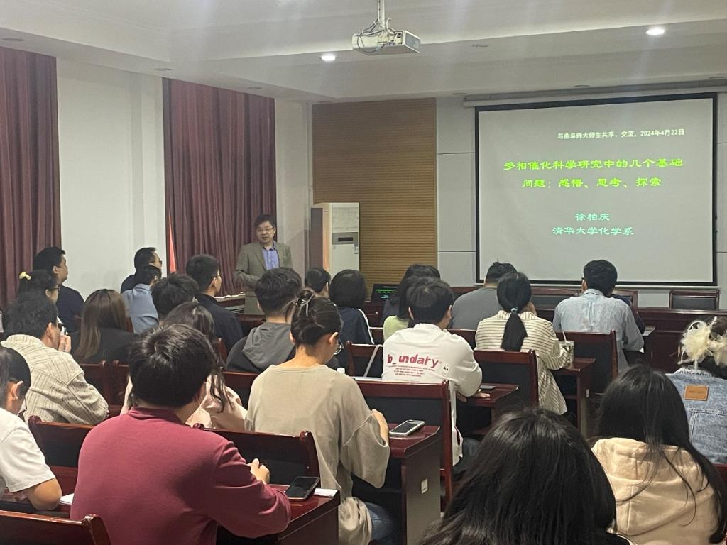徐柏庆教授通过自身在学习与工作中对催化科学基础问题的思考和探索,与学院师生分享了多相催化科学研究中一些基础问题,重点介绍了催化剂的定义、作用本质、催化剂本征活性的测定方法,并分享了其课题组在固体酸催化方面的最新研究进展。学院师生对徐教授的报告内容十分感兴趣,踊跃提问,与徐教授进行了积极的互动和交流。