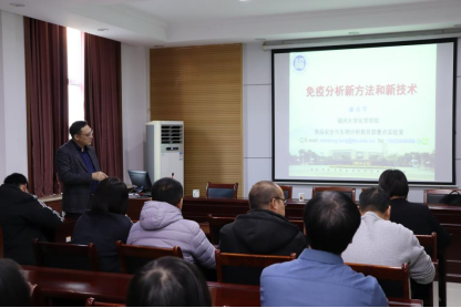 (通讯员:李汶嵘 摄影:陈贵香)为进一步加强学术交流,12月17日,在化学楼226会议室,福州大学唐点平教授应邀来学院作“免疫分析新方法和新技术”学术报告。本次报告会由院长冯媛媛主持,学院青年教师及研究生参加。