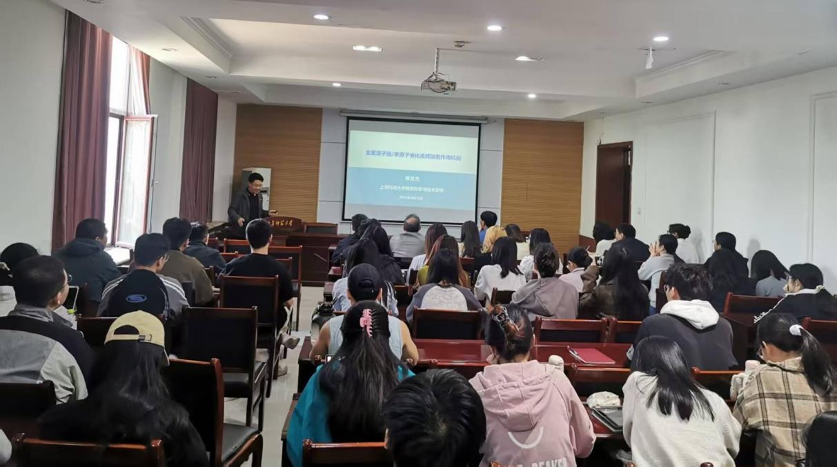 特邀上海科技大学申文杰教授在化学楼226报告厅进行专题学术报告,报告题目为:金属原子簇/单原子催化选择加氢作用机制。报告会由学院副院长李平教授主持,学院师生代表100余人参加。