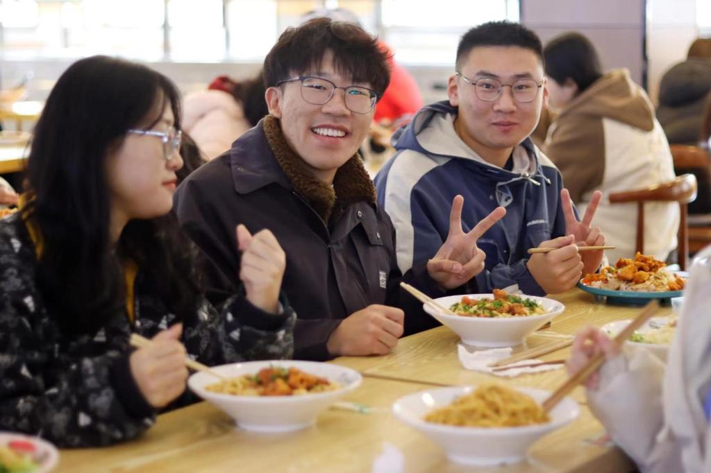 辅导员蒋君于2月21日与学生代表共进午餐,在温馨和谐的气氛中沟通学生在学习、生活等方面的问题。