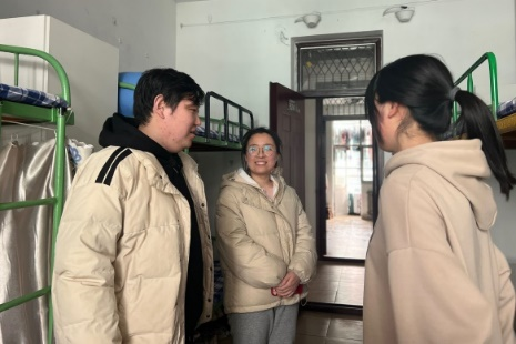 走访学生宿舍期间,老师们亲切询问了同学们对于新学期的适应情况,回答了同学们学习生活方面遇到的问题。在与同学们沟通交流过程中,老师们叮嘱学生们要开窗通风,并注意保持卫生整洁,营造舒适的生活学习环境;也叮嘱同学们注意安全用电,节约水电;老师们还建议同学们多运动,提高身体素质,保持良好积极的心态,鼓励同学们充分利用大学四年的青春提高自己,享受生活。